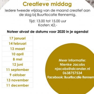 Ontstaan vanuit het inloopuur, behoefte naar samen leuke dingen maken. Elke 2e vrijdag van de maand, komt een, groeiend, aantal buurtbewoners bijeen, om de handen uit de mouwen te steken in het buurtlokaal. Veelal gaat het hier om seizoens gerelateerde ontwerpen. Een beetje creatieviteit moet men zelf meenemen, voor materialen wordt in de regel gezorgd. Dit tegen een vergoeding. Inschrijven wordt gewenst.